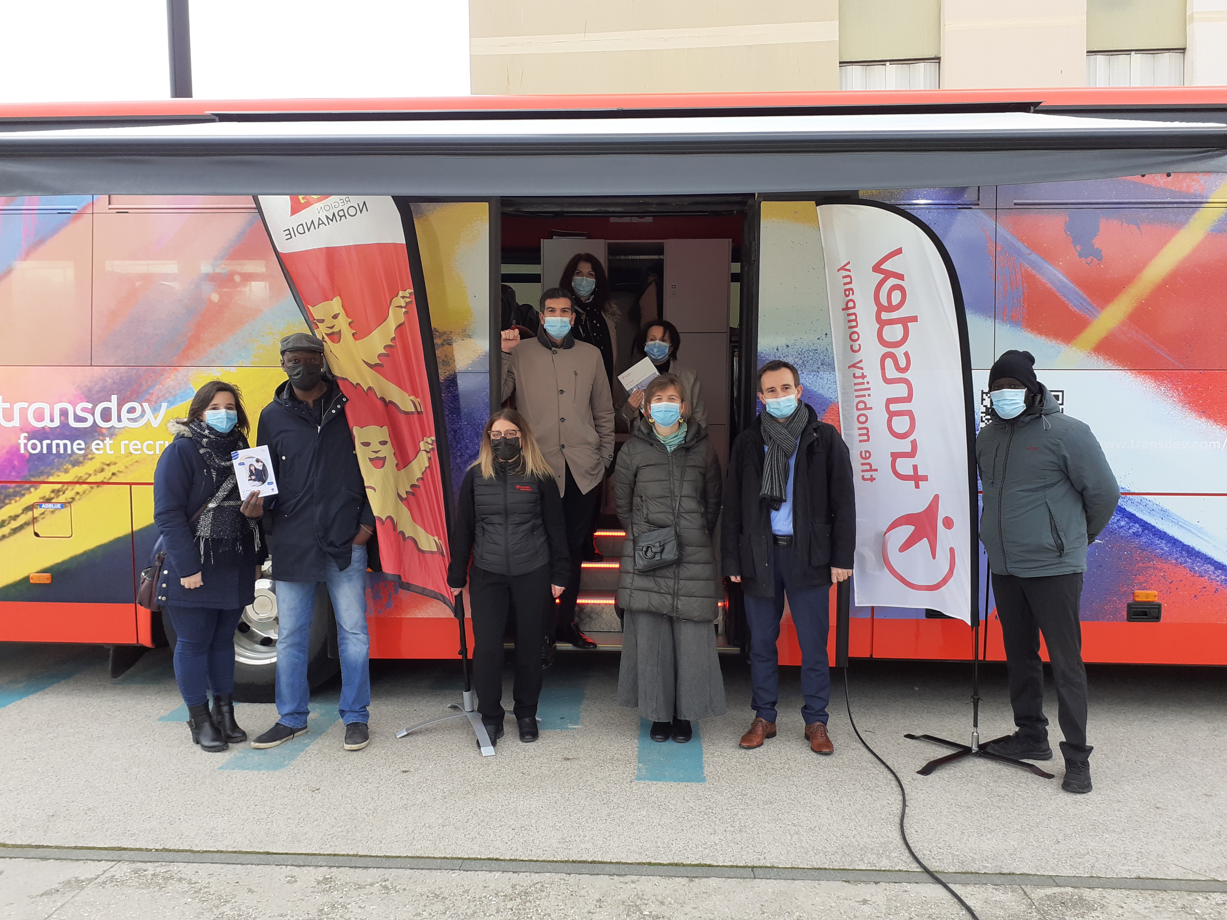 Ce jeudi 24 février 2022, sur l'initiative de Transdev, du Bureau d'Information Jeunesse de la Ville de Rouen et du PLIE de la Métropole Rouen Normandie, et avec le soutien de la Région et des partenaires de l'emploi, le car-école de Transdev a stationné à côté du Centre André Malraux.